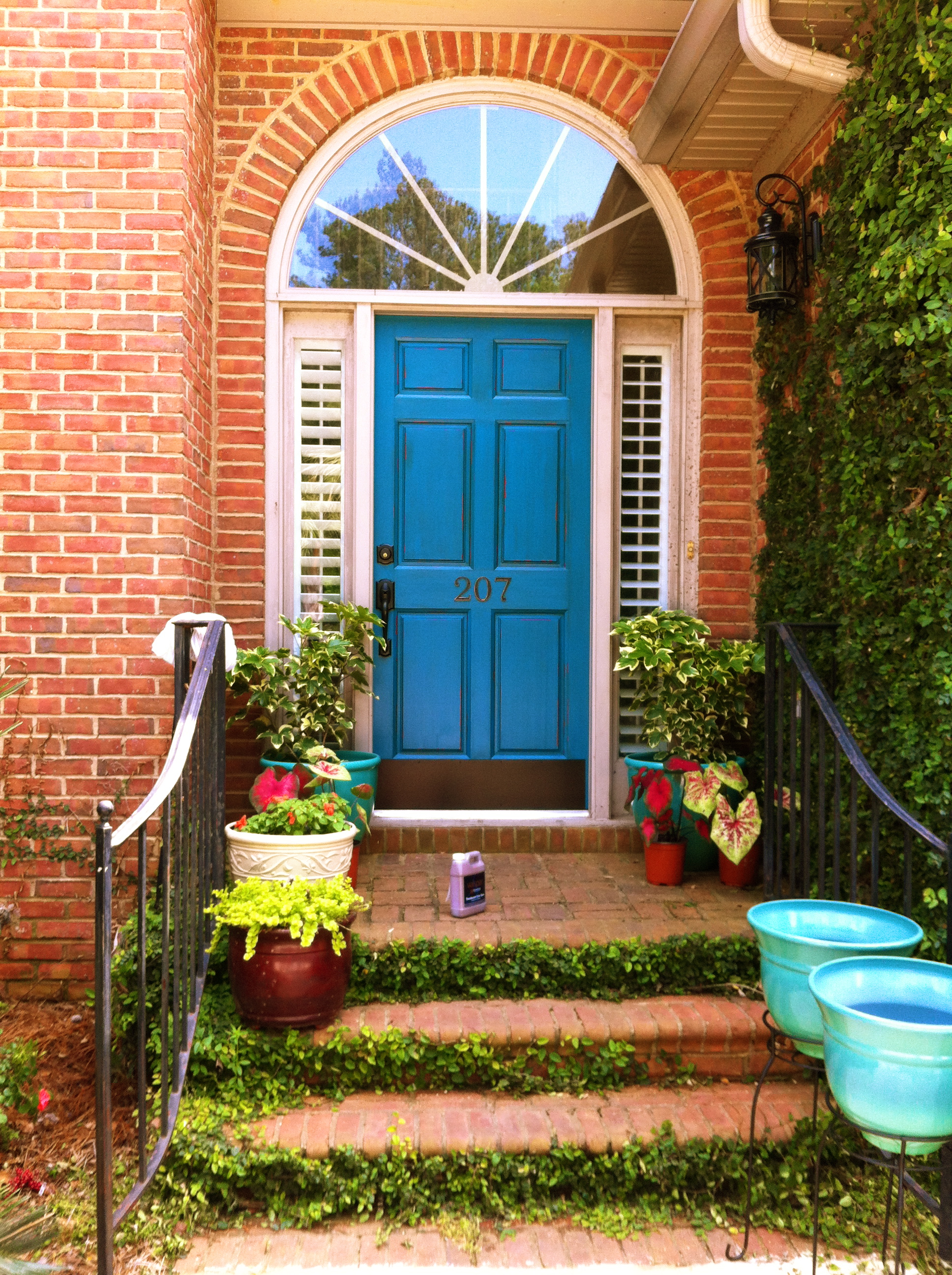 The replacement windows are going to be a little darker than the paint we have now so I painted the door frame to see how it will look with the brick, I think I like it better than the lighter beige…