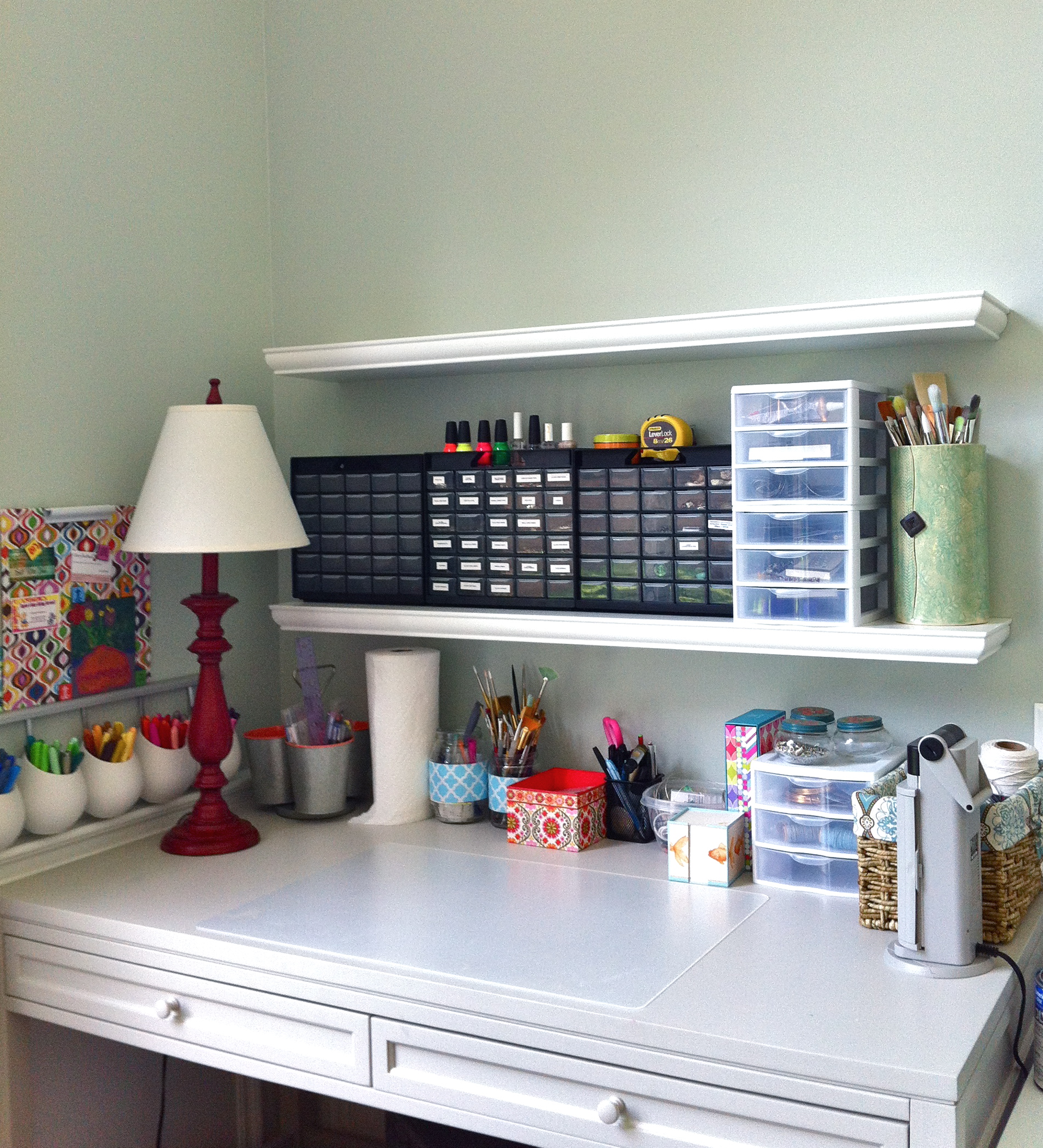 I bought these 48″ floating shelves from Lowes and they will definitely help me get my desk organized and give me a lot more space to spread out. They were very easy to install and everything fits perfectly.