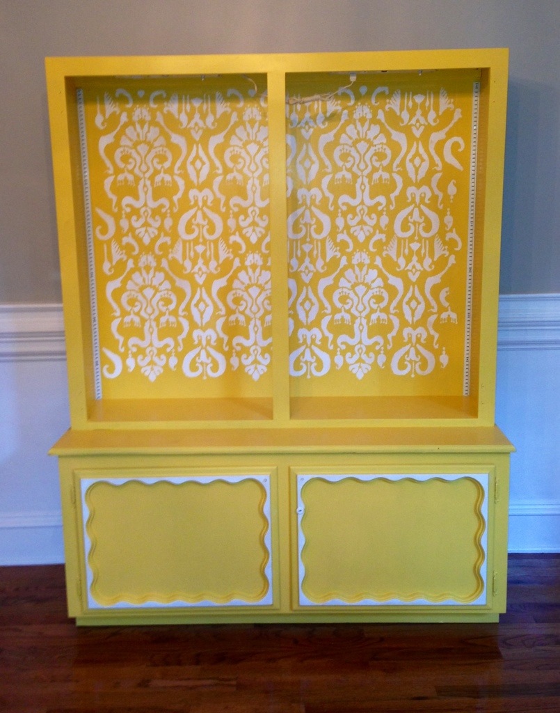 Forgot to take a before picture AGAIN but I found this really ugly cabinet at a thrift store. It’s been sitting in storage for about a year so I took it out and started painting it yellow…
